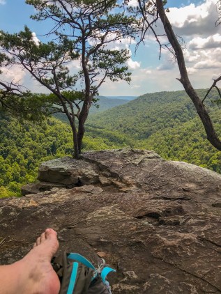 Up on the rim, I was grateful to be walking on relatively smooth ground–not wobbly boulders or a dry creek bed. I did opt for the half-mile side leg out to an overlook called Raven’s Point. The view is like looking out on a green Grand Canyon. I took a long break there, then I got back on the trail and completed the rest of the loop without any trouble.