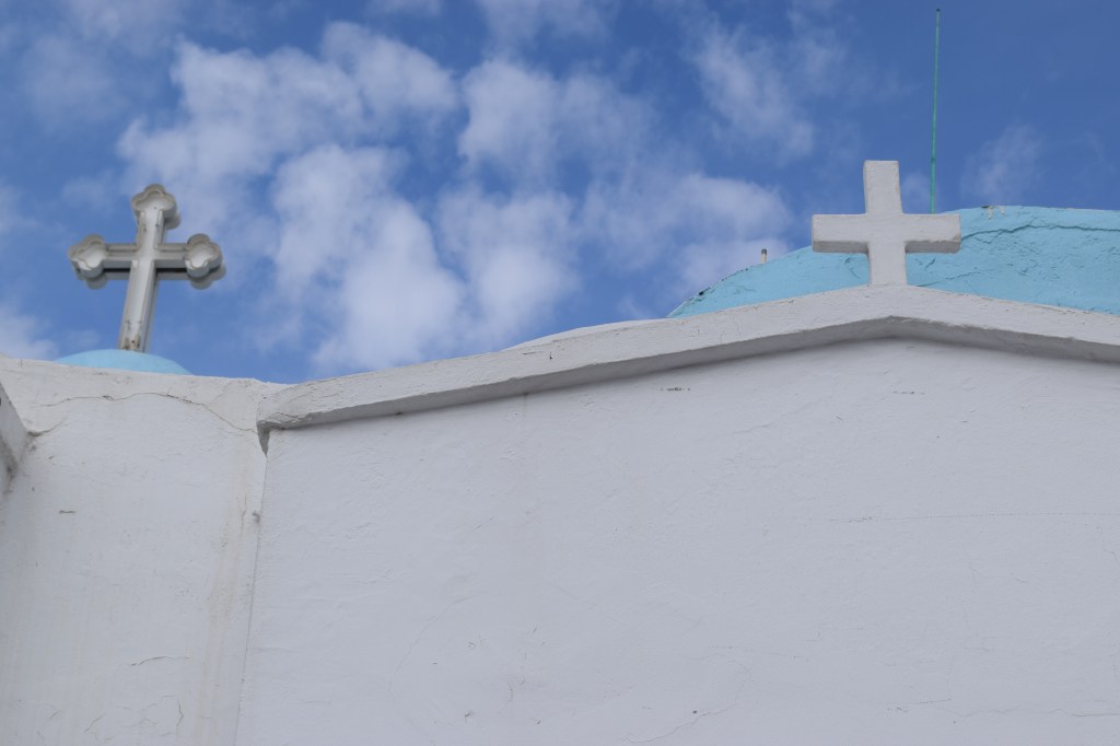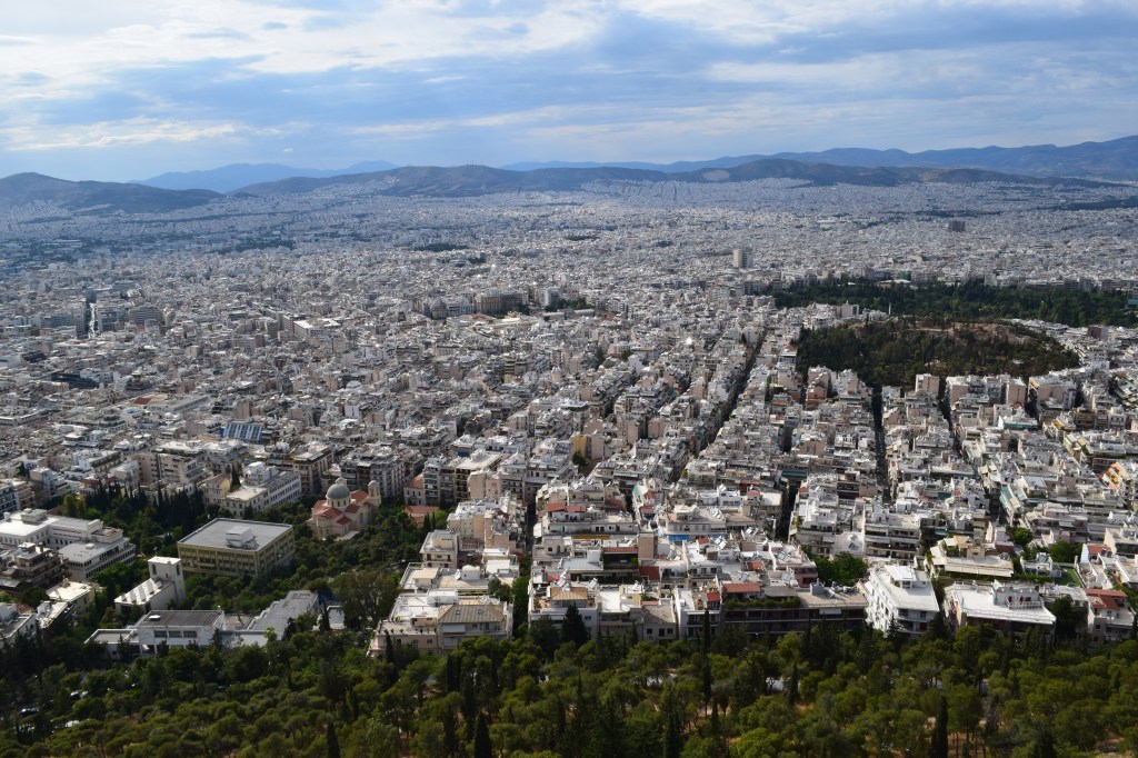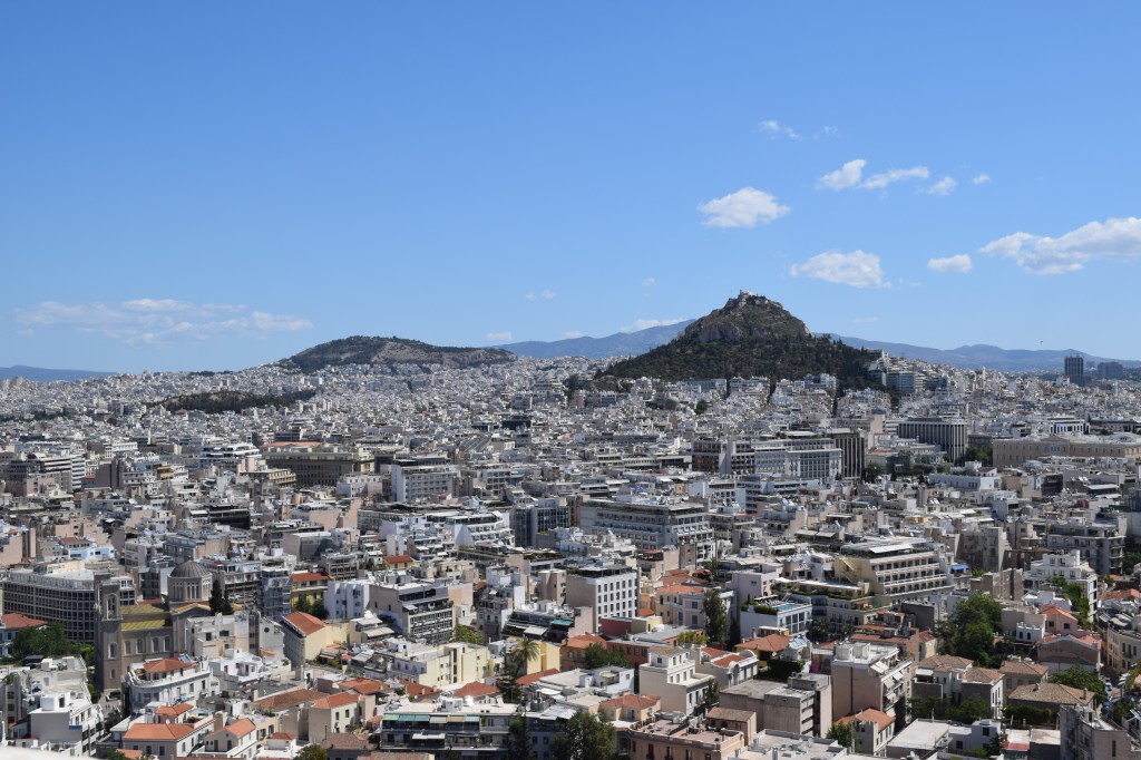 We reached the top together and were rewarded with stunning, 360-degree views of the city of Athens. There’s a beautiful Greek Orthodox chapel there and a couple of restaurants with bars. We sat down at one of them to take in the view, some traditional Greek stuffed grape leaves (dolmas) and soft drinks (“Coke light,” known in the US as diet Coke). The sun was shining, there was a light breeze and the place was beautiful.