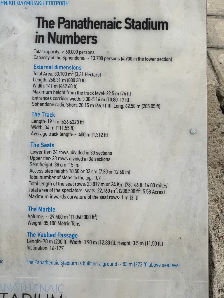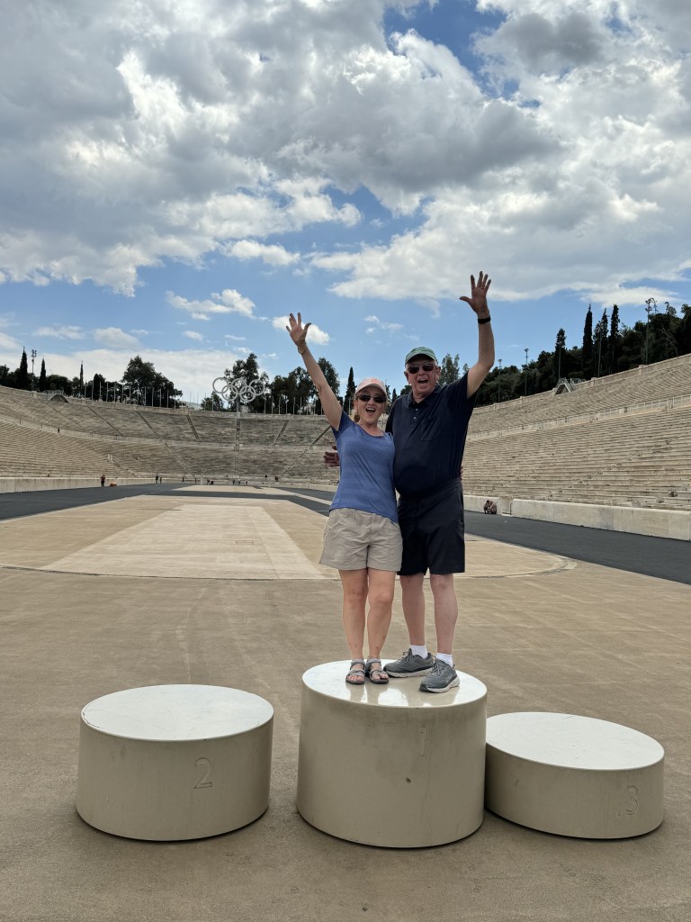 Our time in Athens wouldn’t have been complete without touring that incredible site, climbing the marble-stepped bleachers and listening for the ghosts of medal winners who’d blazed around that track.