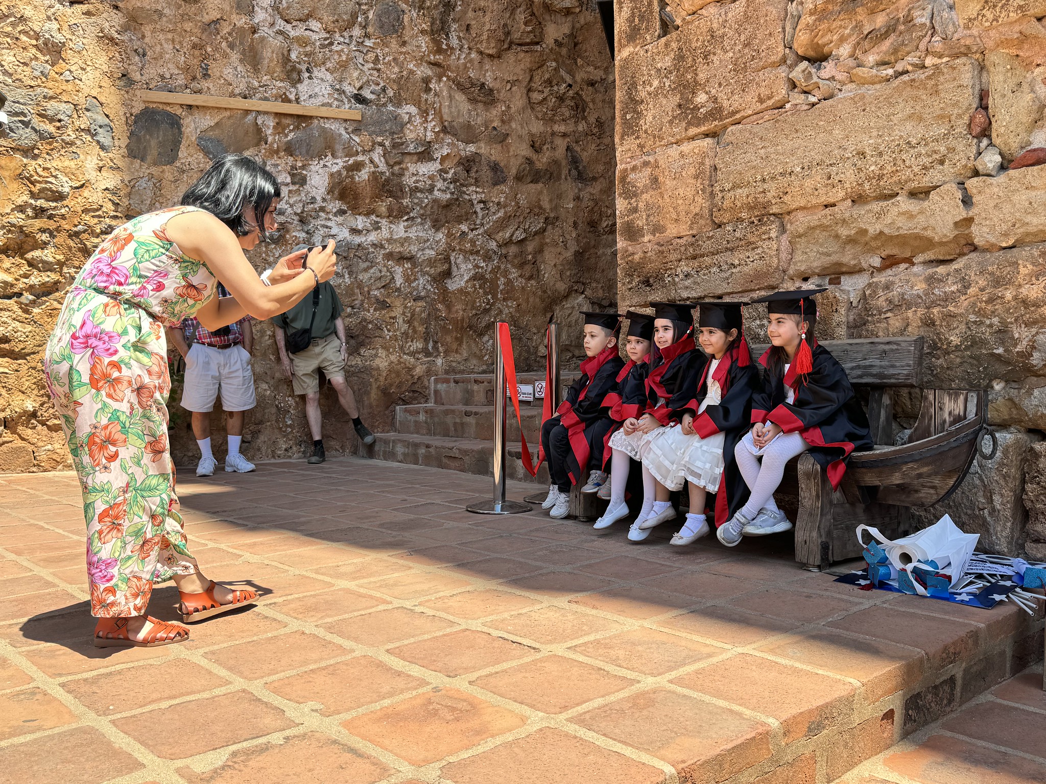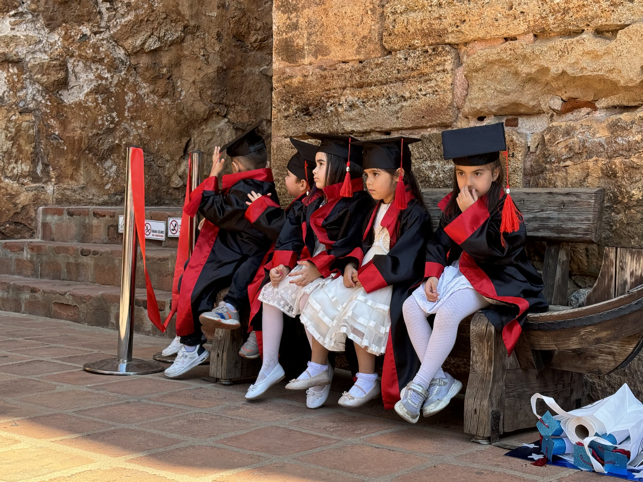 Above: All views from Alanya Castle…including of Cleopatra Beach and of a group of kindergarten graduates from one of several small schools operating on the grounds.